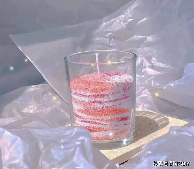 其制作过程与沙瓶画DIY极为相似,但由于冰花蜡颗粒自带一定的粘性,以及制作蜡烛的玻璃杯一般沙瓶画的敞口大,所以相对来说制作更为简单。