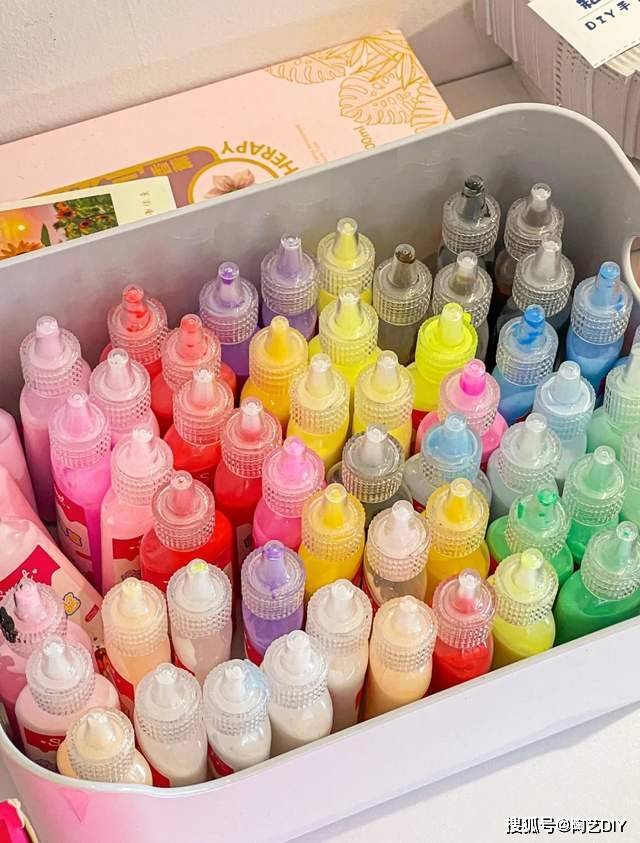制作前,可以先找一幅自己喜欢的画作,按照画上的要素、配色,选择合适的液体颜料来对蜡烛颗粒进行染色调配。